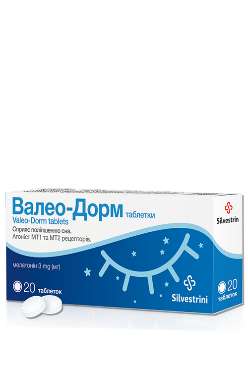 Мелатонін природний гормон людини, що виробляється шишкоподібною залозою мозку (т.з. епіфізі), сітківкою очей та деякими іншими тканинами здорової людини. Синтез і секреція мелатоніну посилюється під час темряви і зменшується під впливом світла. Близько 80% мелатоніну синтезується вночі. Секреція мелатоніну починається незабаром після заходу сонця, досягає піку в серединині ночі (між 2 і 4 годинами) і поступово зменшується в другу половину ночі. Мелатонін реалізує ефекти через специфічні мелатонінові рецептори 1-го і 2-го типу (відповідно МТ1 та МТ2).