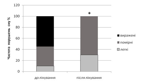 Рис. 3. Динаміка ступеня тяжкості порушень сну на тлі лікування відповідно до даних Піттсбурзького опитувальника сну (PSQI)